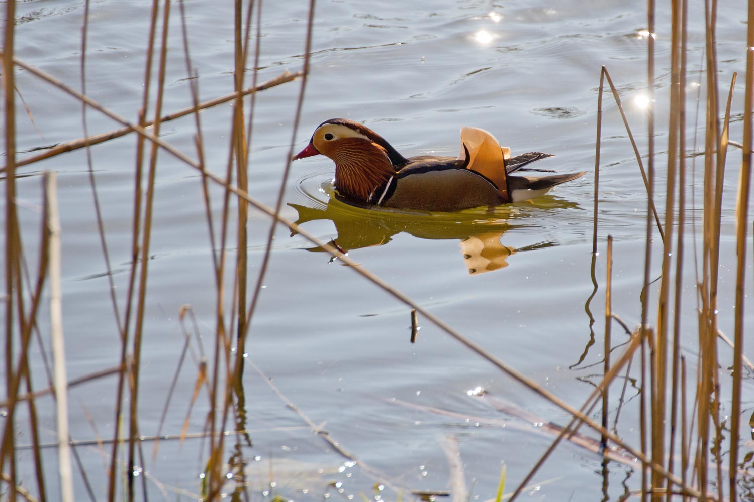 Mandarinente auf dem Haussee im Park Petzow