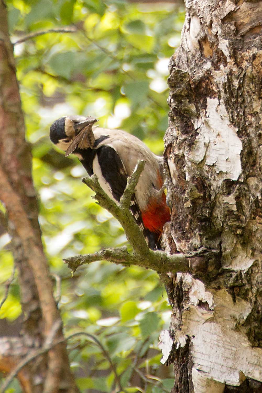 Buntspecht mit Futter
